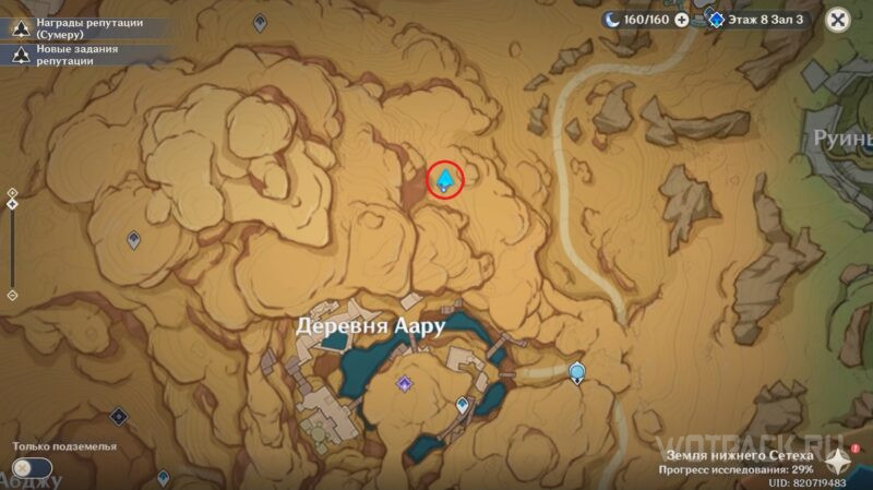 Свой путь можно начать от Статуи Архонта в деревне Аару, а после вскарабкаться на бархан, попутно пользуясь помощью четырехлистных символов (по умолчанию англ. «T»).