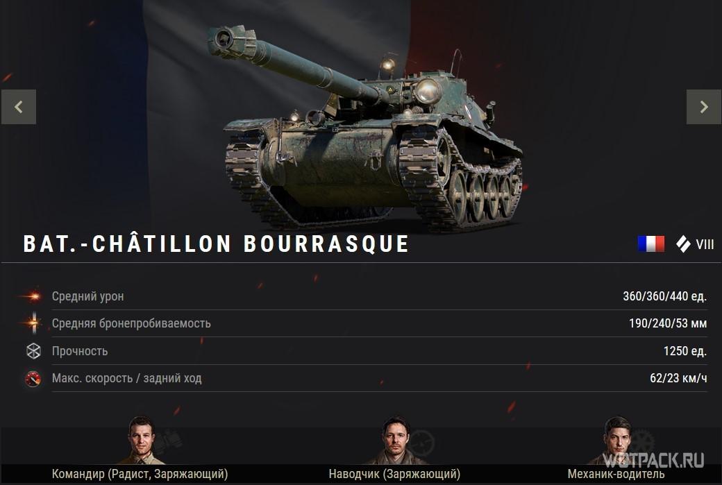 В переводе с французского «bourrasque» означает внезапность, ураганный порыв ветра. Именно от этого отталкивались разработчики, создавая новый танк. B-C Bourrasque полностью оправдывает свое название, на поле боя он действительно способен быстро передвигаться, как ураган! Мобильность и разгон сопоставимы с легкими танками, поэтому ему не составит труда устроить рейд по тылам противника или обойти с фланга, чтобы разрядить в корму барабан на 2 снаряда.