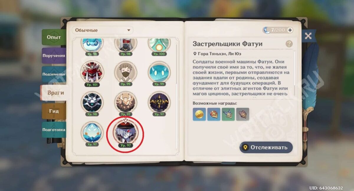 - Шеврон рядового/сержанта/офицера можно получить после победы над застрельщиками Фатуи. Они встречаются по всему Тейвату и зачастую ходят группами.