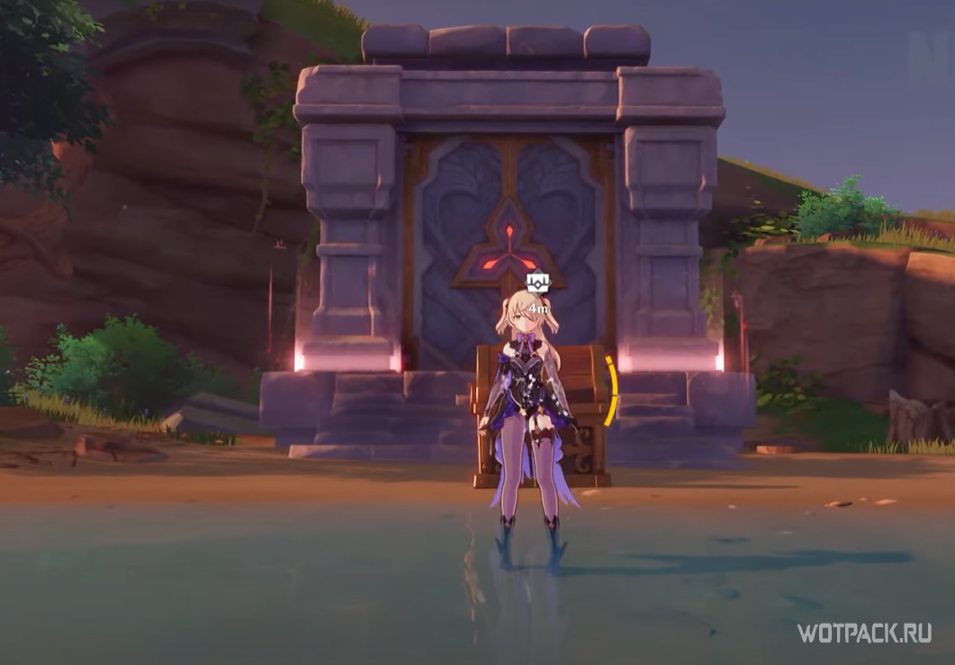 После выполнения каждого из испытаний все три Электро монумента постепенно разблокируются. Теперь необходимо активировать их с помощью любого Электро персонажа. Если все сделано правильно, запустится анимация открытия подземелья Мосири Кара.