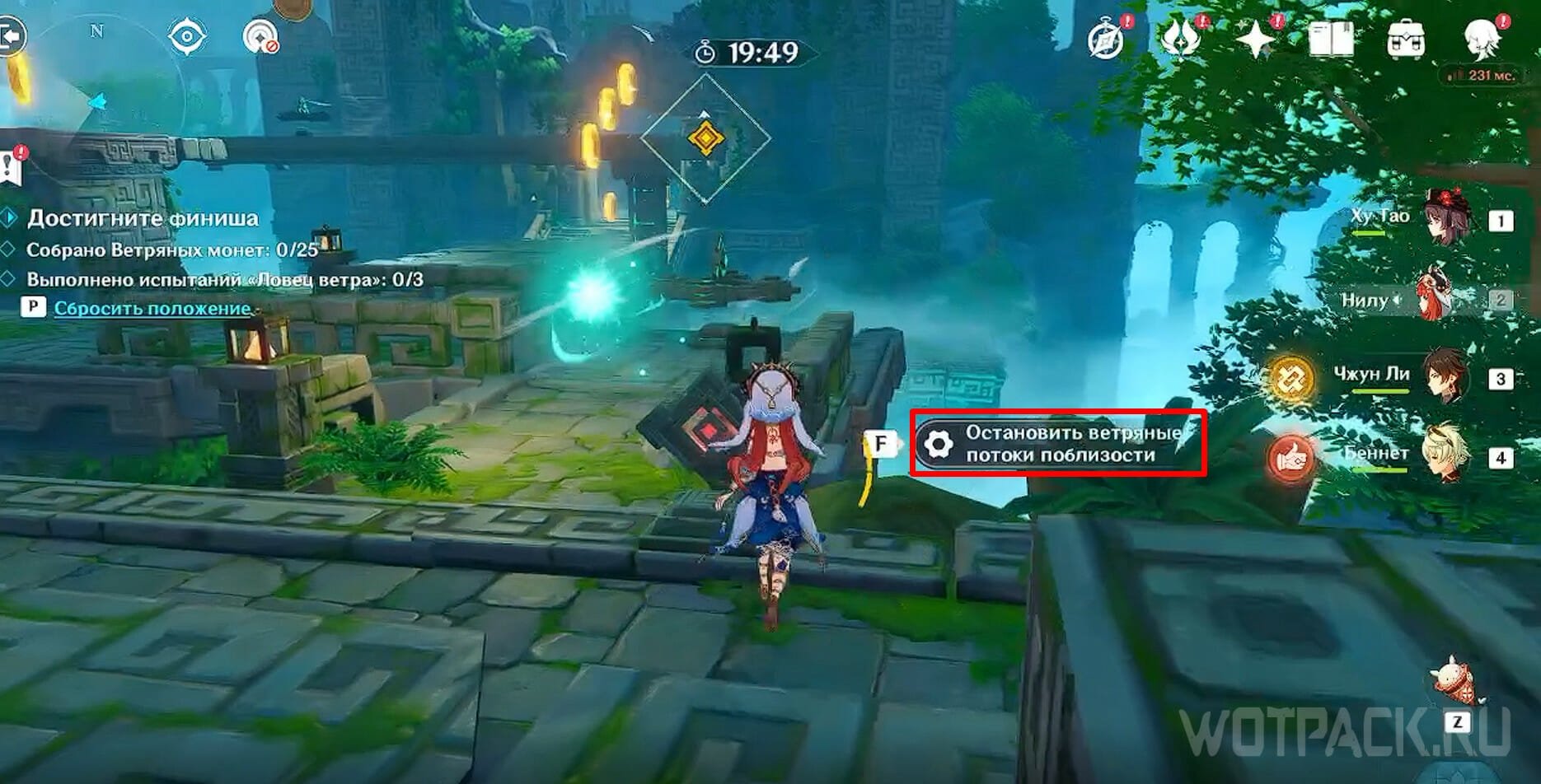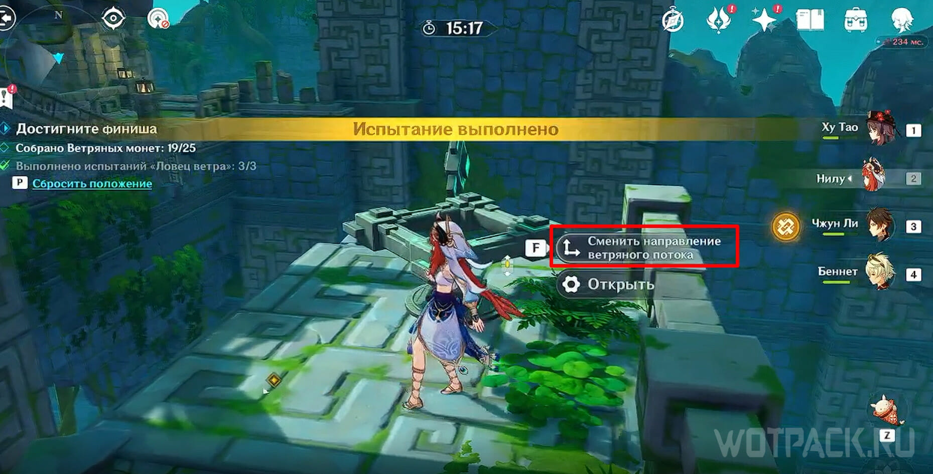Подберите Анемо частицу и пройдите по кругу. Можно начать с любого направления.