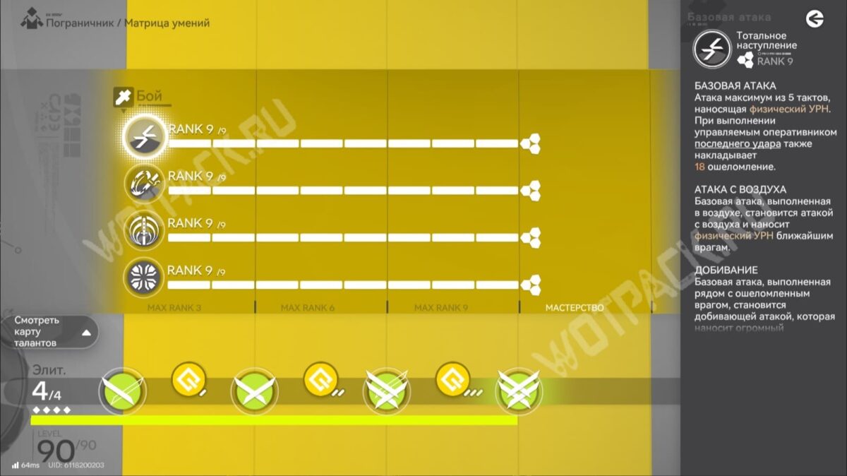 - Б/а «Тотальное наступление» — оглушает, наносит средний урон и постоянно генерирует очки навыков (считается как пассивный реген ресурса).