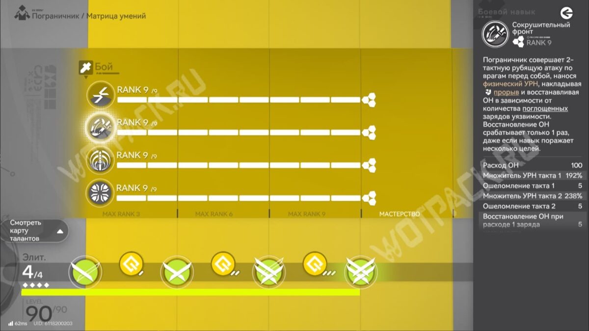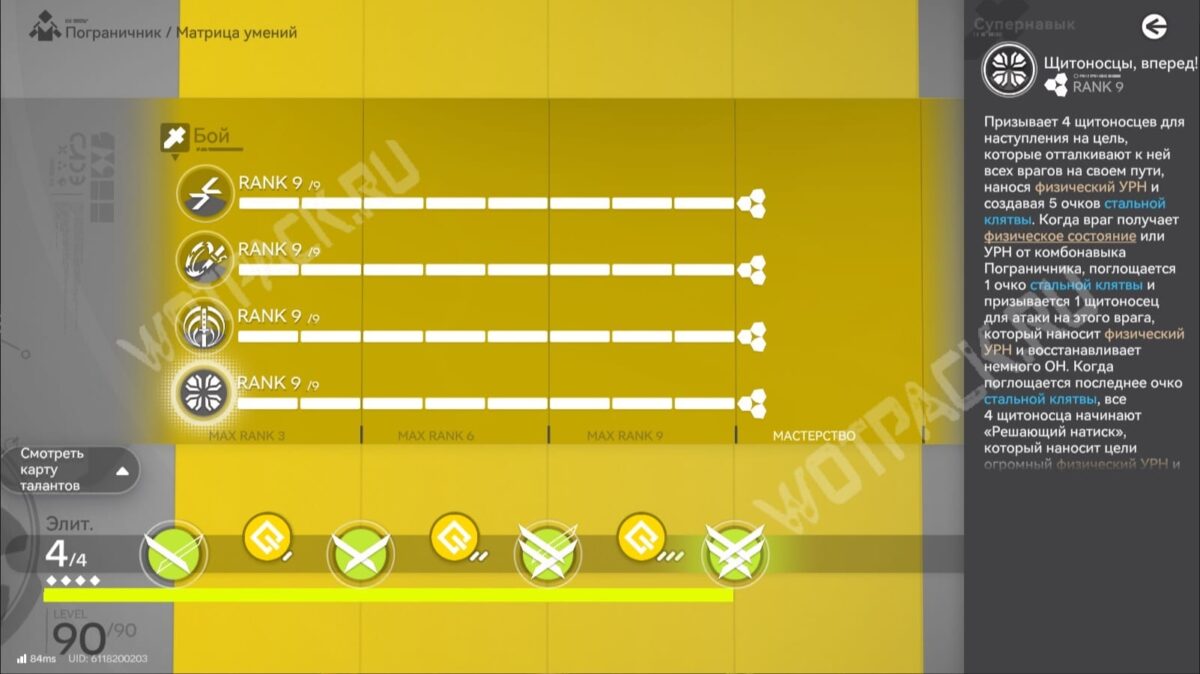Пограничник — ключевое звено в физических отрядах из-за высокой генерации очков навыков. Хорошо дамажит, после изучения талантов начинает накладывать на союзников «Боевой задор», который повышает АТК и силу искусств.