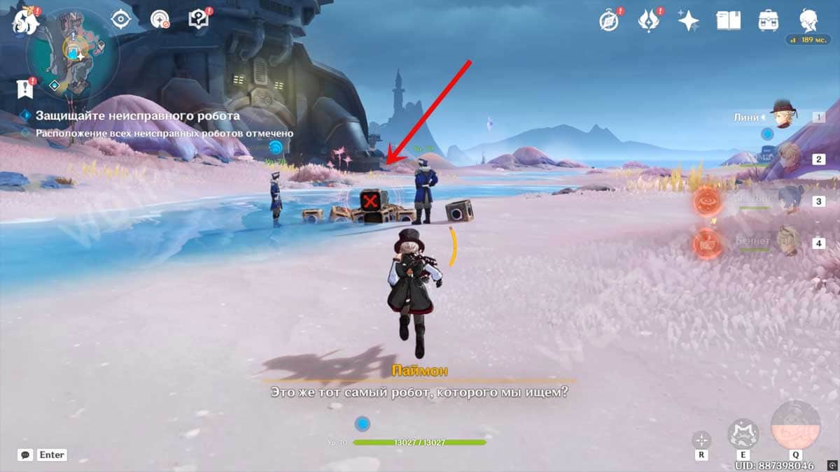 Подойдите к опричникам, которые окружили маленькие кубики. В этот раз не придется ловить всех механических товарищей, достаточно победить Фатуи на точке. Враги не имеют какого-то сопротивления, из-за чего их можно одолеть с помощью любого отряда.
