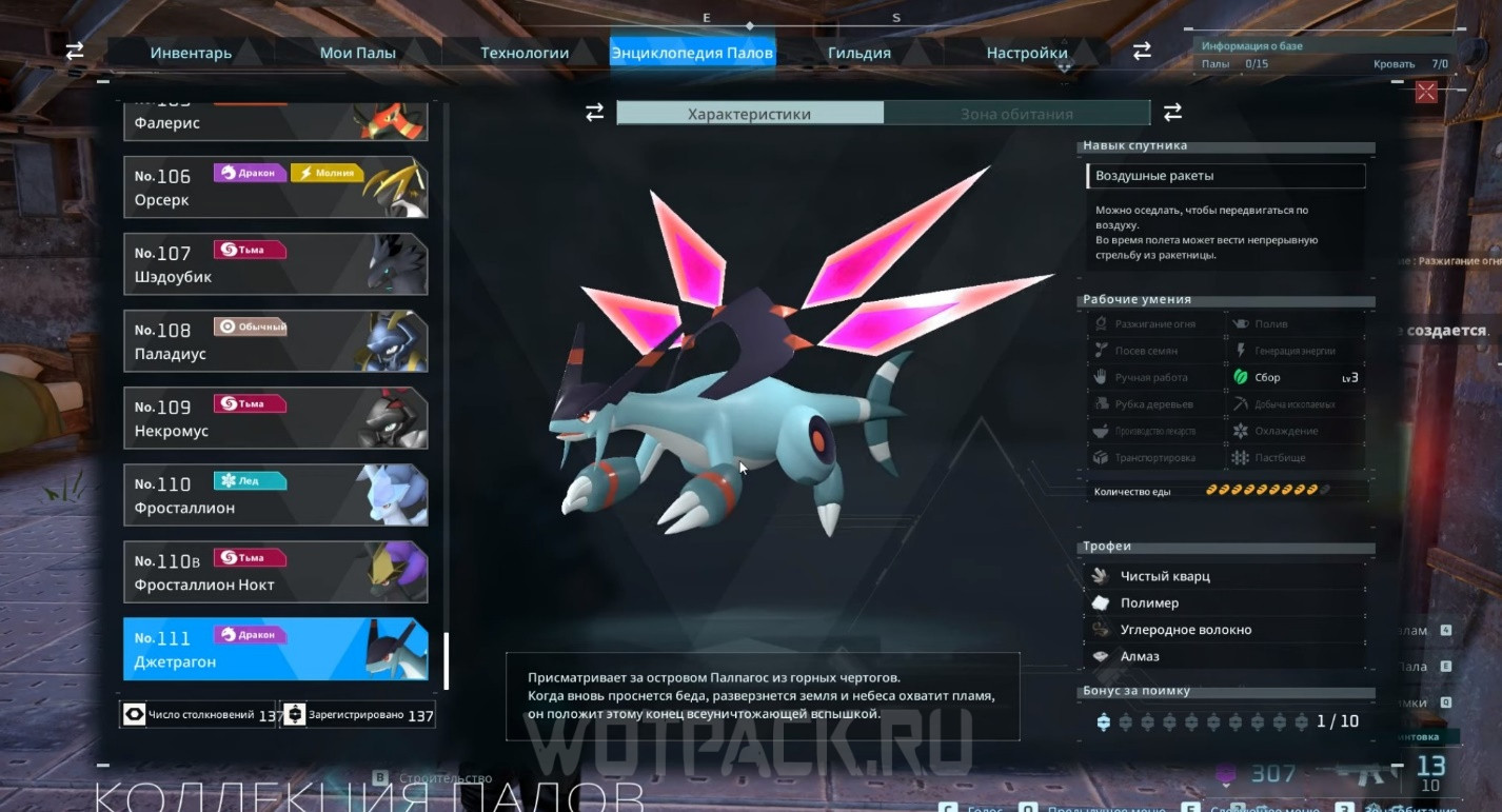 Единственный способ получить полимер в открытом мире – выбить его с Джетрагона. Существо является Палом из энд-гейма и обитает лишь в одной локации – на северо-западе Обсидианового вулкана (X: -780; Y: -331). Убив или поймав высокоуровневого «покемона», получите следующие ресурсы: