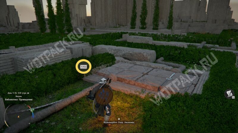 Как только подойдёте к Библиотеке Провидения, познакомитесь с Ведьмой Белой Вороной и приобретёте навык «Сила Аксиомы». Подойдите к двум платформам и активируйте новую способность клавишей «Tab».
