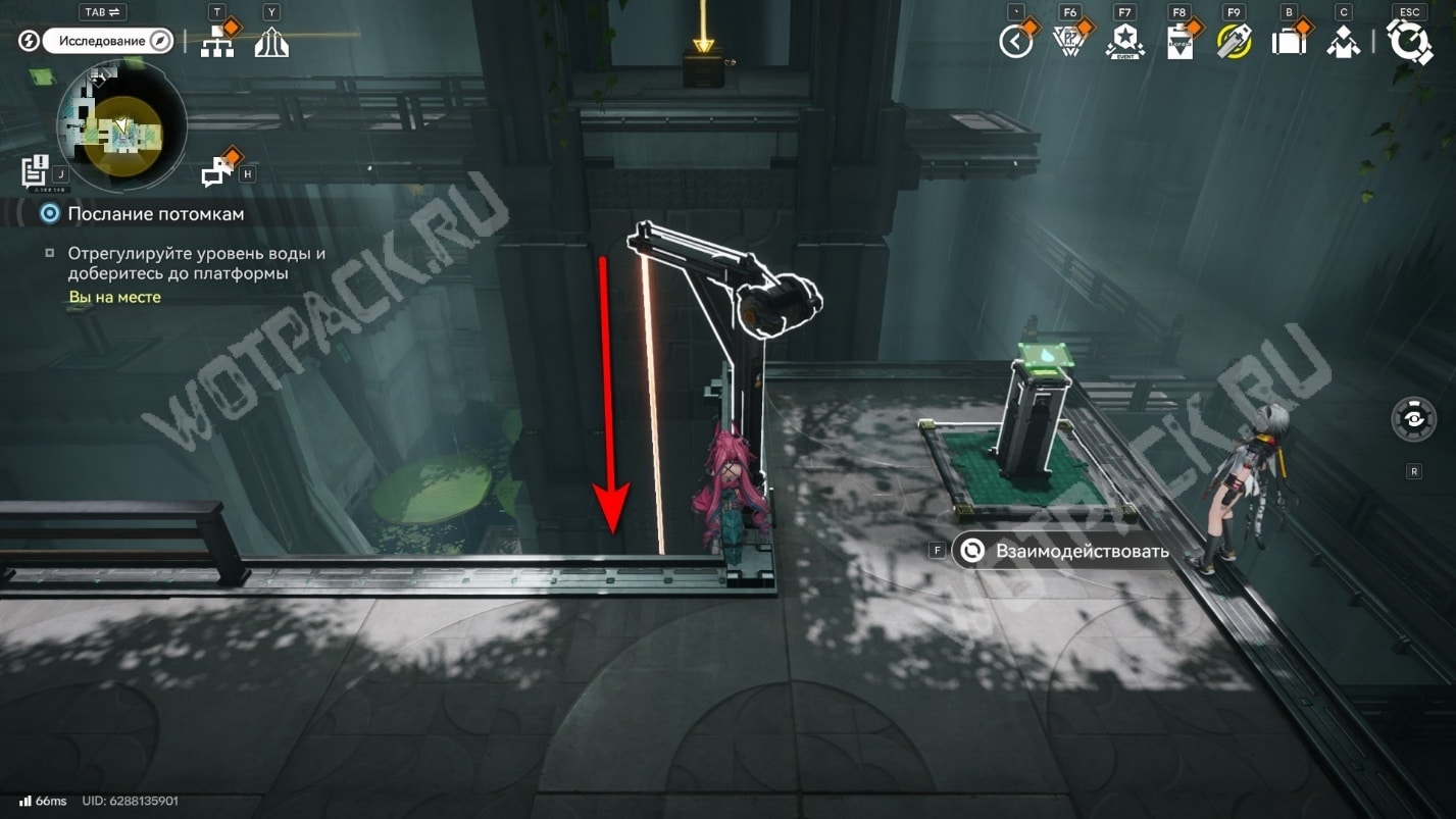 Это уберет воду под ксиранитом и позволит пройти дальше по платформе.
