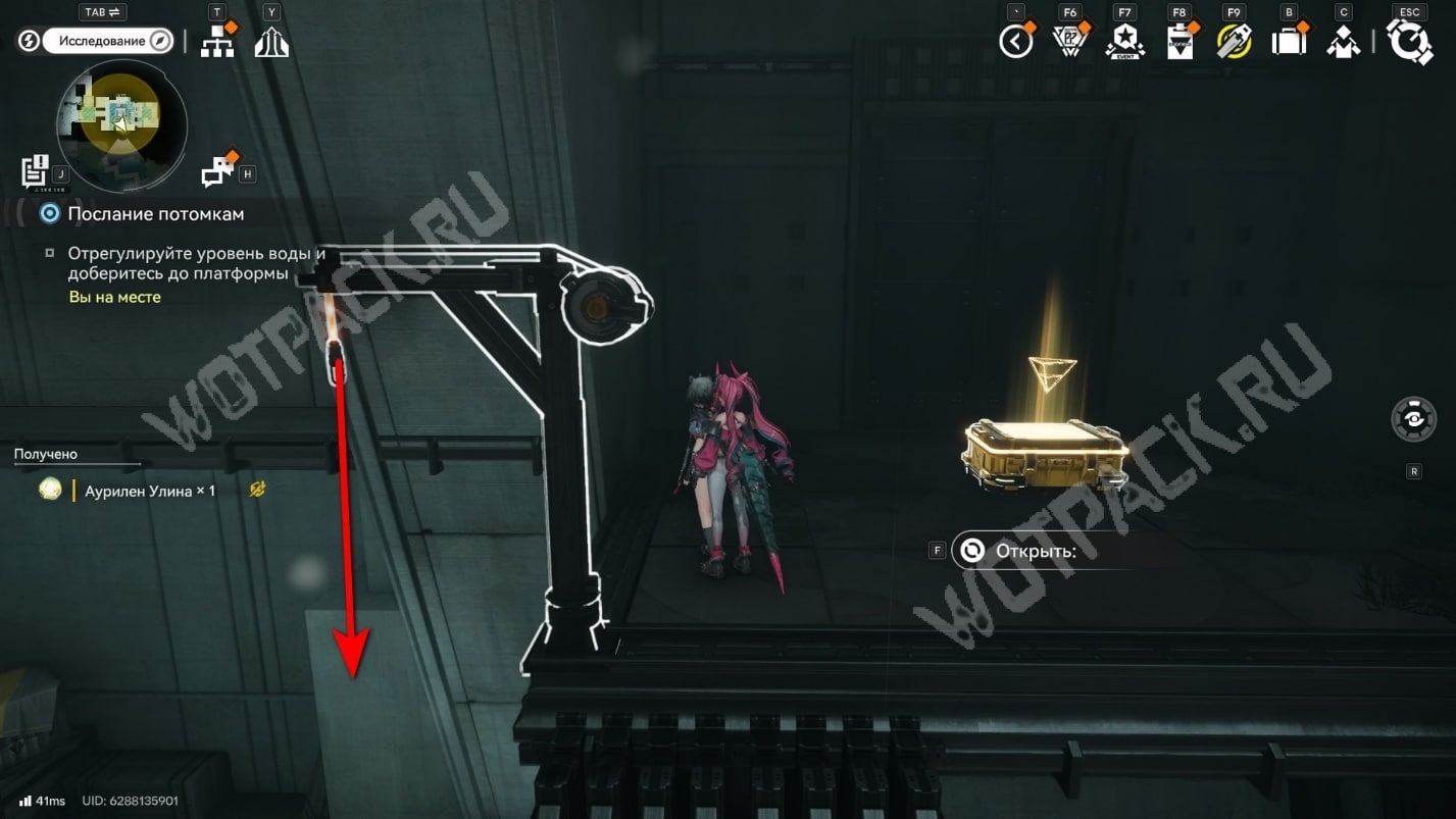 Он поднимет на возвышенность с Ауриленом, сундуком и вторым механизмом. Активируйте его.