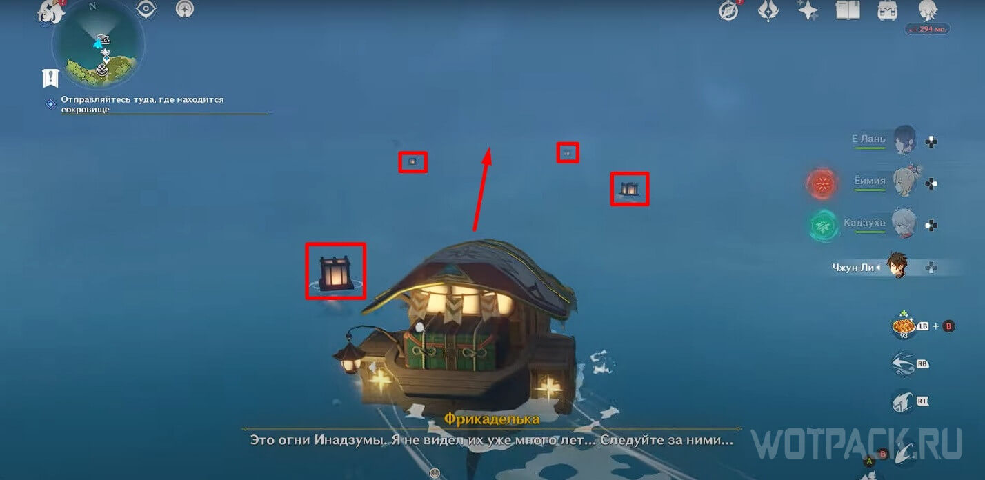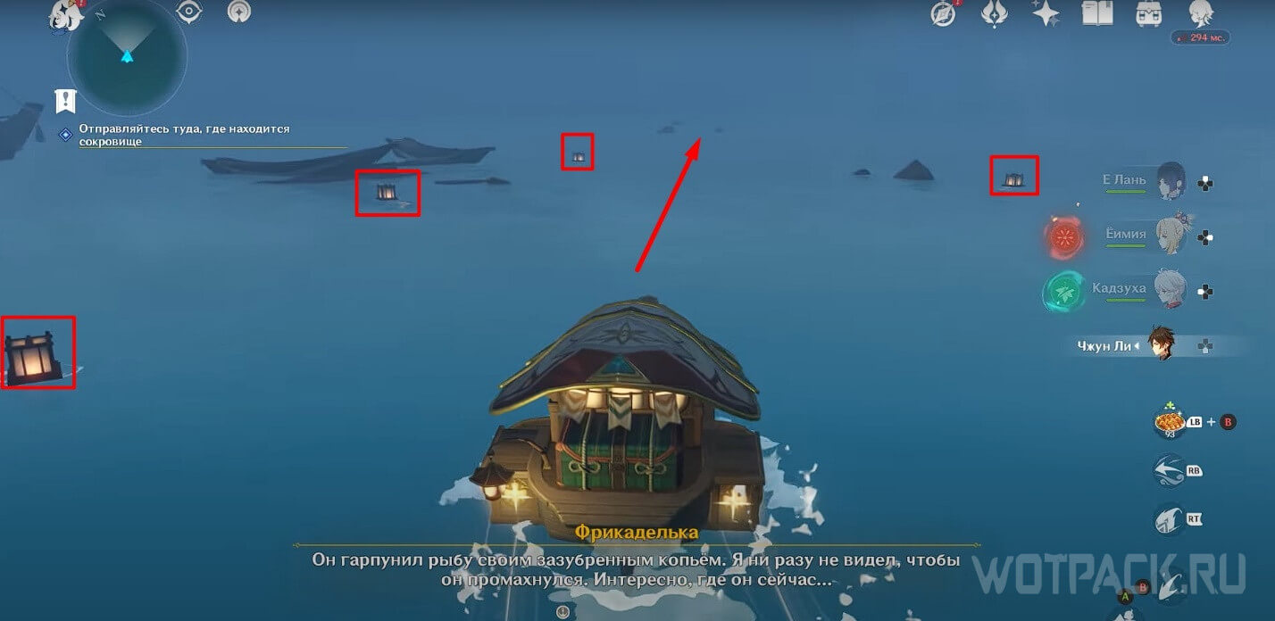 Фрикаделька сообщит, что ей требуется помощь Путешественника и Паймон в поисках сокровищ. Садитесь на борт корабля и отправляйтесь в путь, который накроется густым туманом: