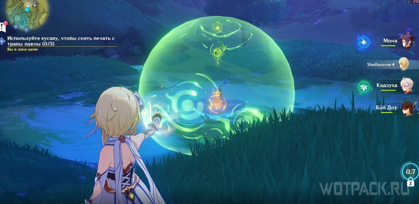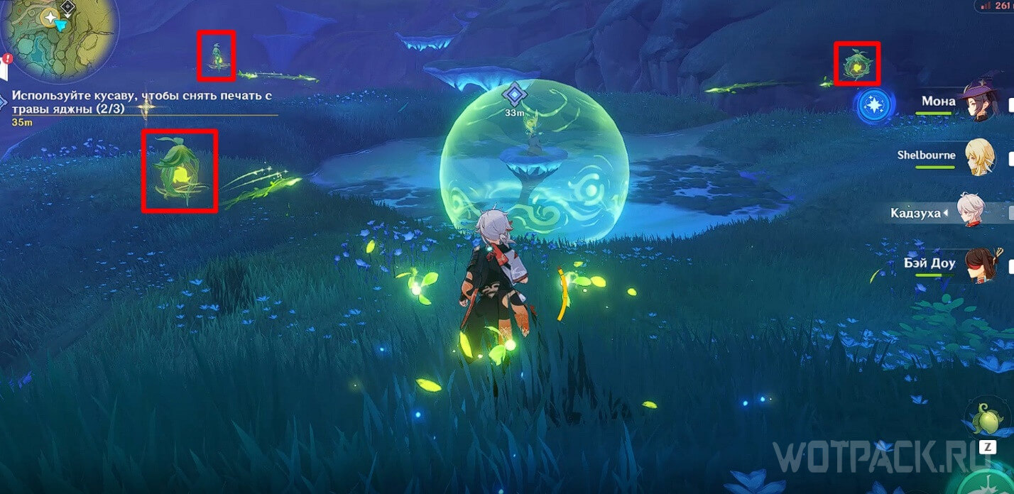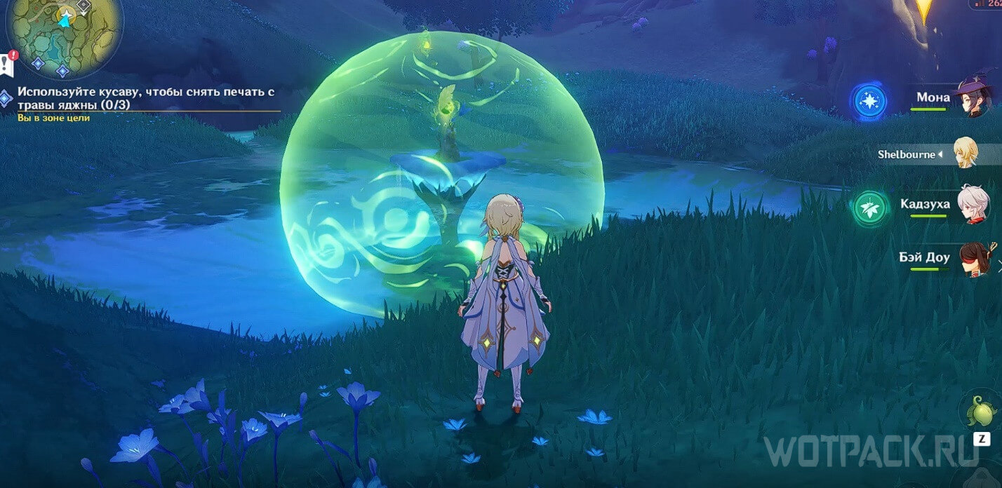 Трава окажется под защитой печатей, которые необходимо снять, чтобы появилась возможность взаимодействовать с растением.