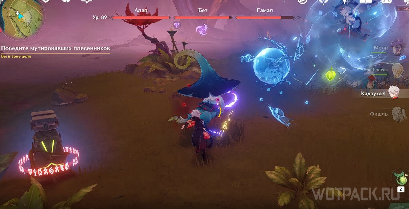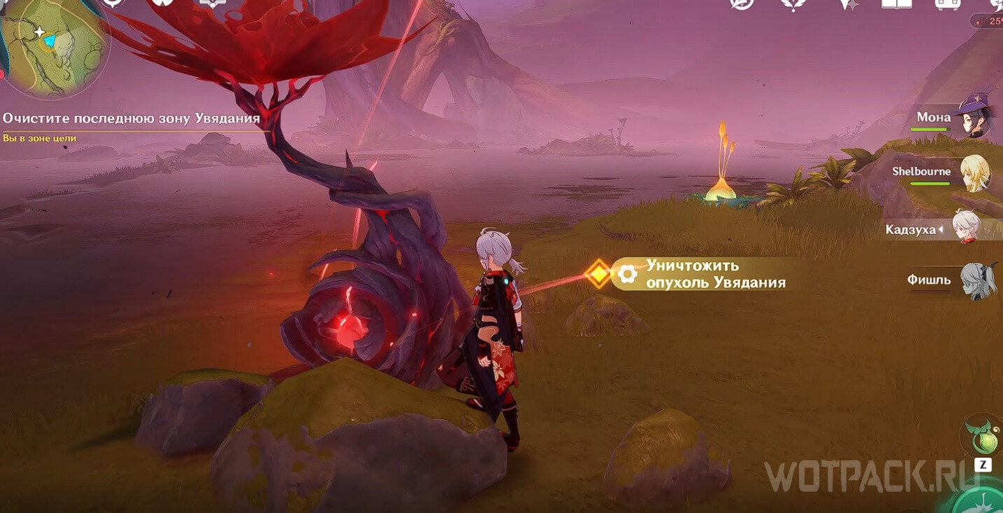 - Красный круг – ветвь увядания, которую нужно уничтожить прицельным выстрелом с дендрогранумом.