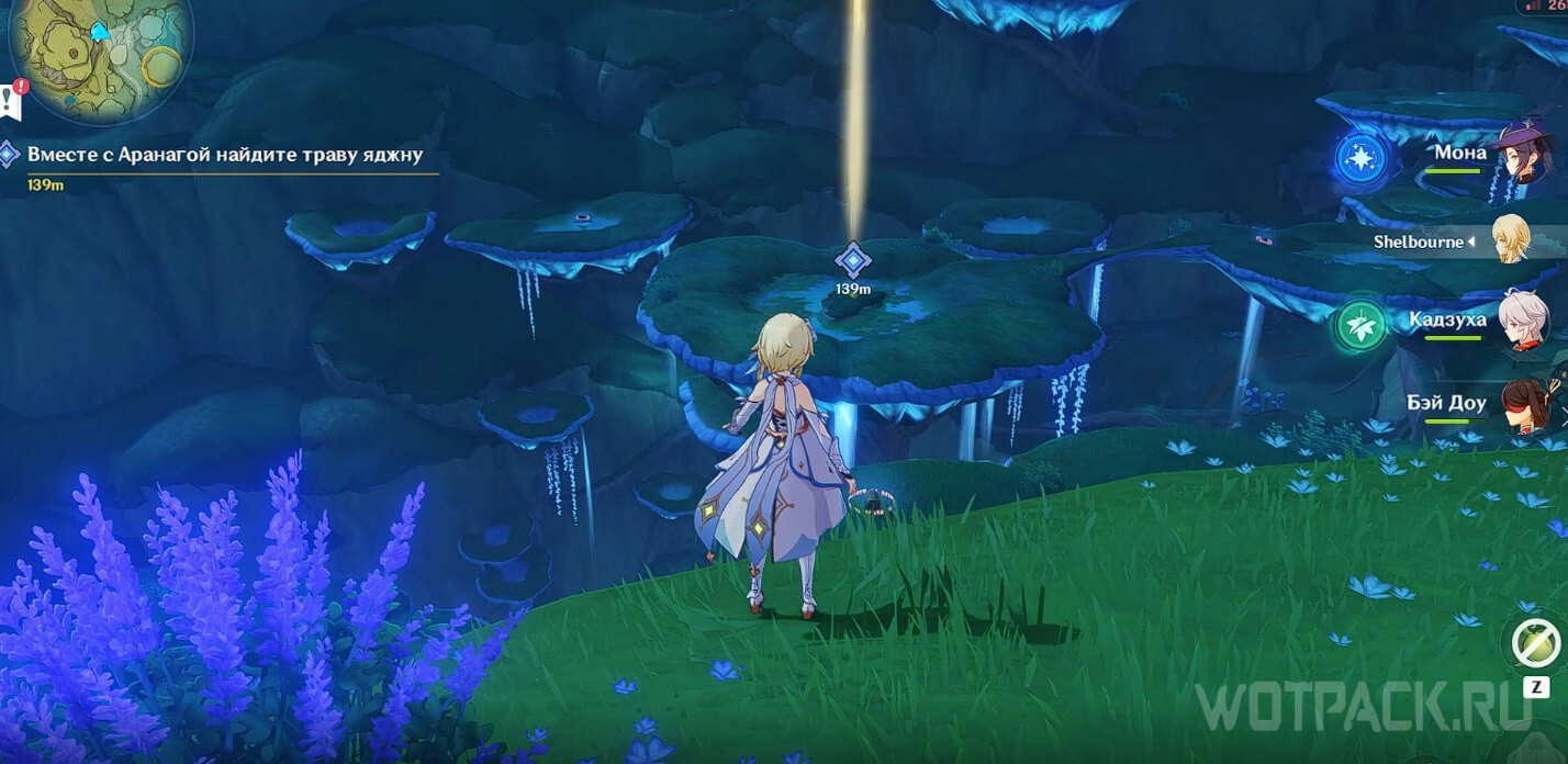 Проследуйте за аранаром на вершину гриба. Проще всего вернуться к телепорту и парить к квестовой точке оттуда.