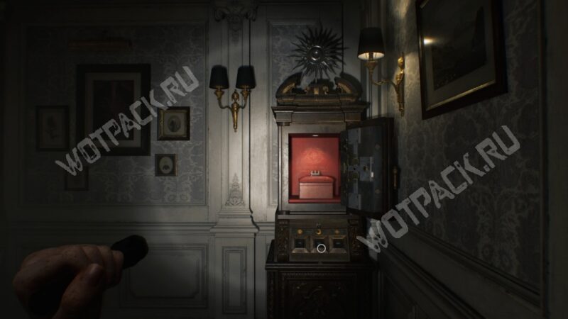 Теперь загрузитесь на момент с возвращением из Подвала и отправляйтесь в кабинет главного исследователя на втором этаже восточного крыла, где ранее нашли солнечный кварц. Взаимодействуйте с открытым шкафом-головоломкой и введите полученный код: