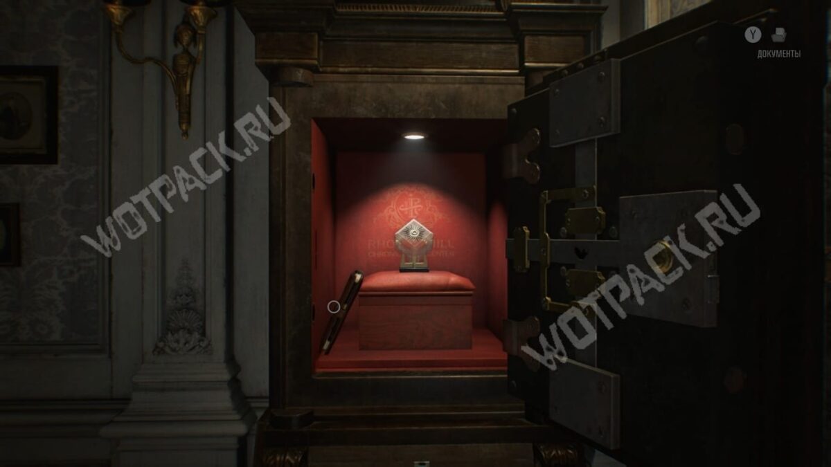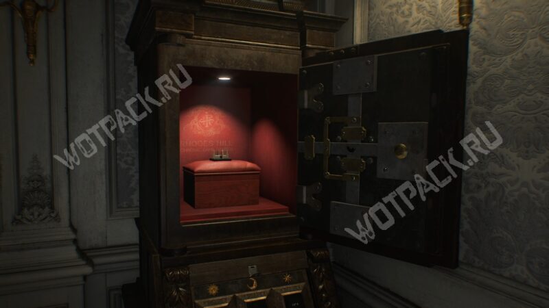 Теперь загрузитесь на момент с возвращением из Подвала и отправляйтесь в кабинет главного исследователя на втором этаже восточного крыла, где ранее нашли солнечный кварц. Взаимодействуйте с открытым шкафом-головоломкой и введите полученный код: