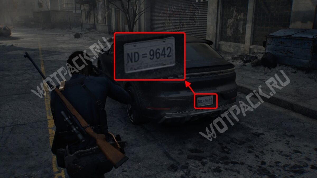 В поисках подсказок фанаты обратили внимание на номер машины Леона — «ND = 9642». Это отсылка на RE2, RE4, RE6 и RE9 — номерные части серии с участием героя в обратном порядке. Значение буквам «ND» и знаку «=» пока не смогли подобрать. В сети существует неподтверждённое мнение, что ND может быть аббревиатурой рабочего названия проекта «New Dawn», о котором ходили слухи ещё до официального анонса.