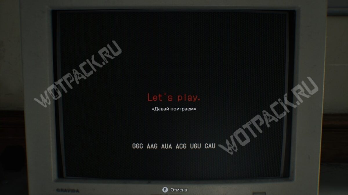Вместо чертежей получите загадочную надпись «Давай поиграем» и последовательность из восемнадцати букв: GGC AAG AUA ACG UGU CAU.