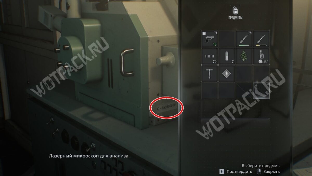 При внимательном изучении лазерного микроскопа в лаборатории гематологии тоже нашли интересную надпись: «G = 150 000 000». Её хорошо видно на боковой панели, когда выбираете материал для анализа.