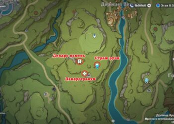 Ниже представлены скриншоты с расположением всех поврежденных стражей руин (вместе с кубами), а также ветвей с Дендрогранумом и Дендро камня для вызова руинных шпионов.