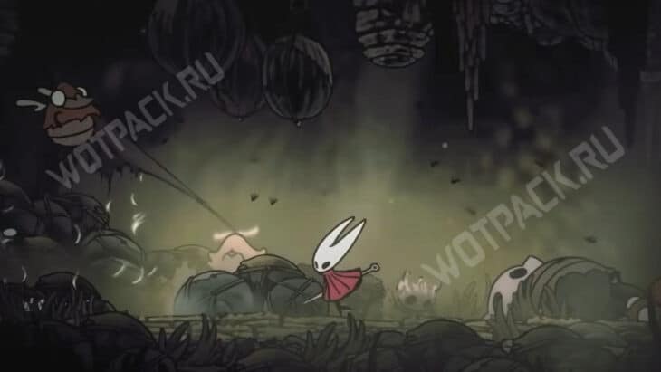 В восточной части пещеры над ямой, наполненной шипами, есть ловушка с растением, похожим на Барнакл из Half-Life. Позвольте монстру притянуть Хорнет в тайный лаз и продолжите восхождение до наивысшей точки, используя языки чудовищ для продвижения по маршруту мимо колючек. В конце тропа выведет к месту, где находится Вог: убедите ее присоединиться к каравану, чтобы разблокировать возможность за деньги открывать местонахождение других блошек.