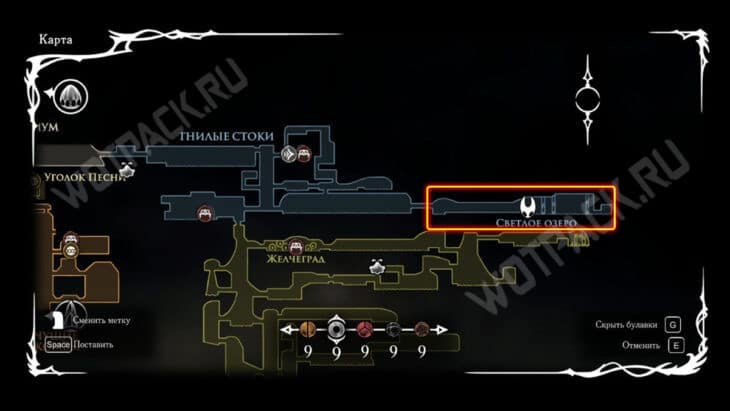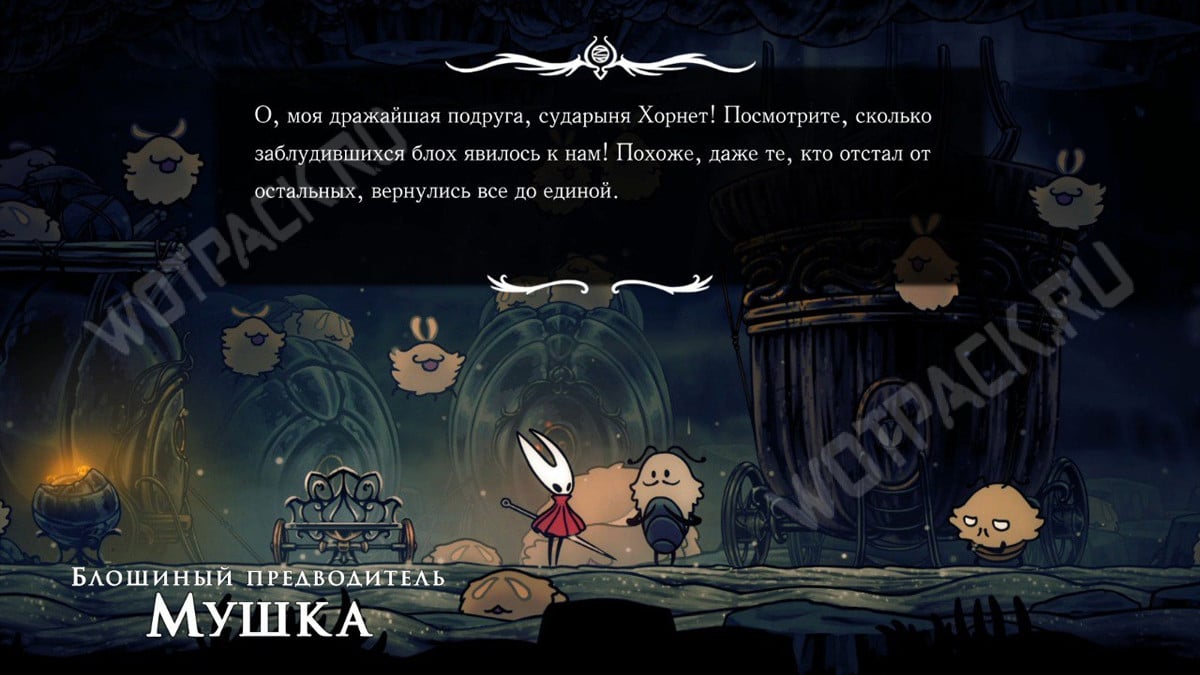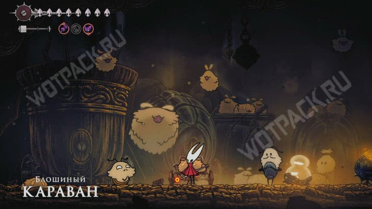 После спасения 25 блошек караван в Silksong можно передвинуть в Блошетопию и выполнить условие для разблокировки нескольких концовок. Чтобы основать блошиный город, придется отправиться в Гнилые стоки и открыть Светлое озеро на востоке. В этой зоне находится похожий на арфу архитектурный объект — активируйте его с помощью иглончели и вернитесь к Мушке с отчетом.