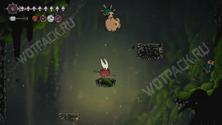 Если Хорнет обладает двойным прыжком, то сможете сразу после предыдущей блошки приступить к сбору следующей: