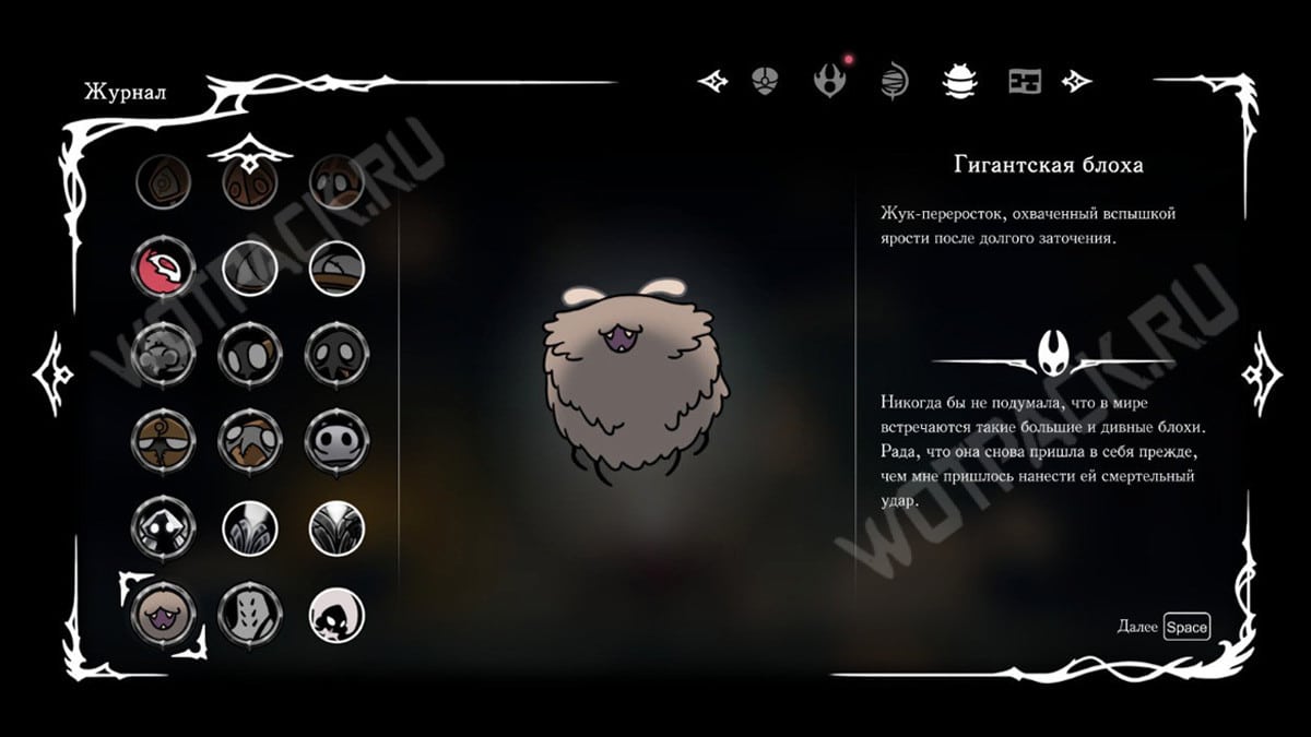 - Гигантская блоха — огромная моль в роли мини-босса, добавляющая в журнал тематическую запись.