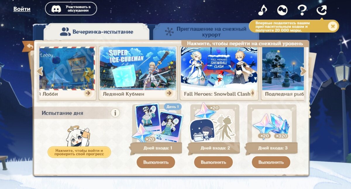 В разделе «Приглашение на снежный курорт» выберите функцию «Пригласить друзей», чтобы поделиться ссылкой с личным кодом. После этого союзник отобразится в нижнем окне с Путешественниками. Есть несколько условий: