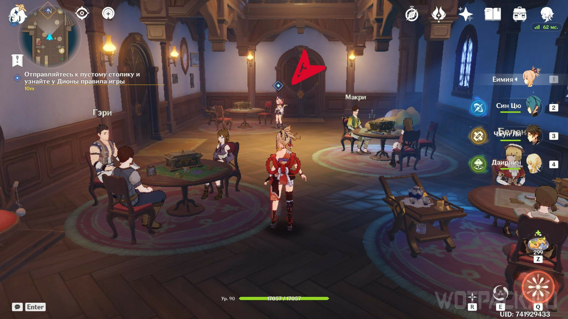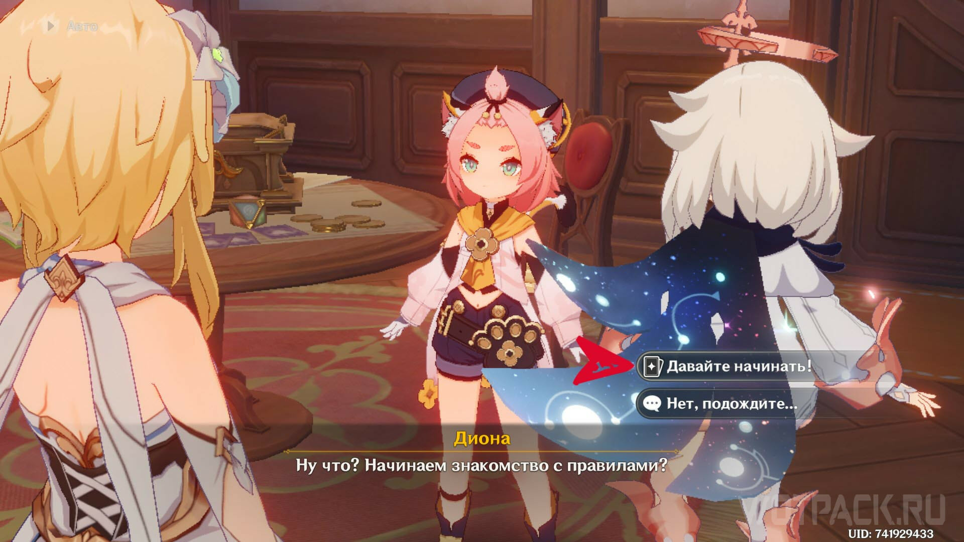 Внутри поговорите с Маргаритой, владелицей таверны, и познакомьтесь с ее работниками — барменом Шу Юнем и котиком Принцем. От мастера узнайте об особенностях игры и отправляйтесь с Дионой за свободный столик, чтобы приступить к обучению.