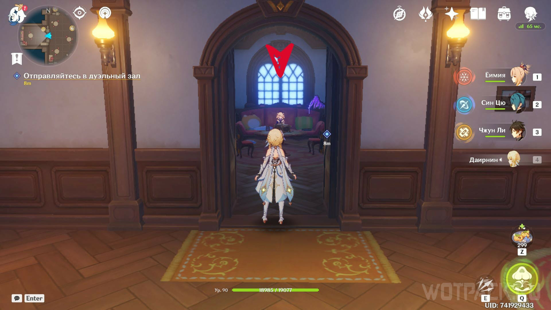 Отправляйтесь в дуэльный зал, где встретитесь с последним соперником — Фишль. Примите участие в дуэли против Принцессы осуждения и ее фамильяра Оза, чтобы завершить тренировку и стать полноправным игроком Священного призыва семерых.