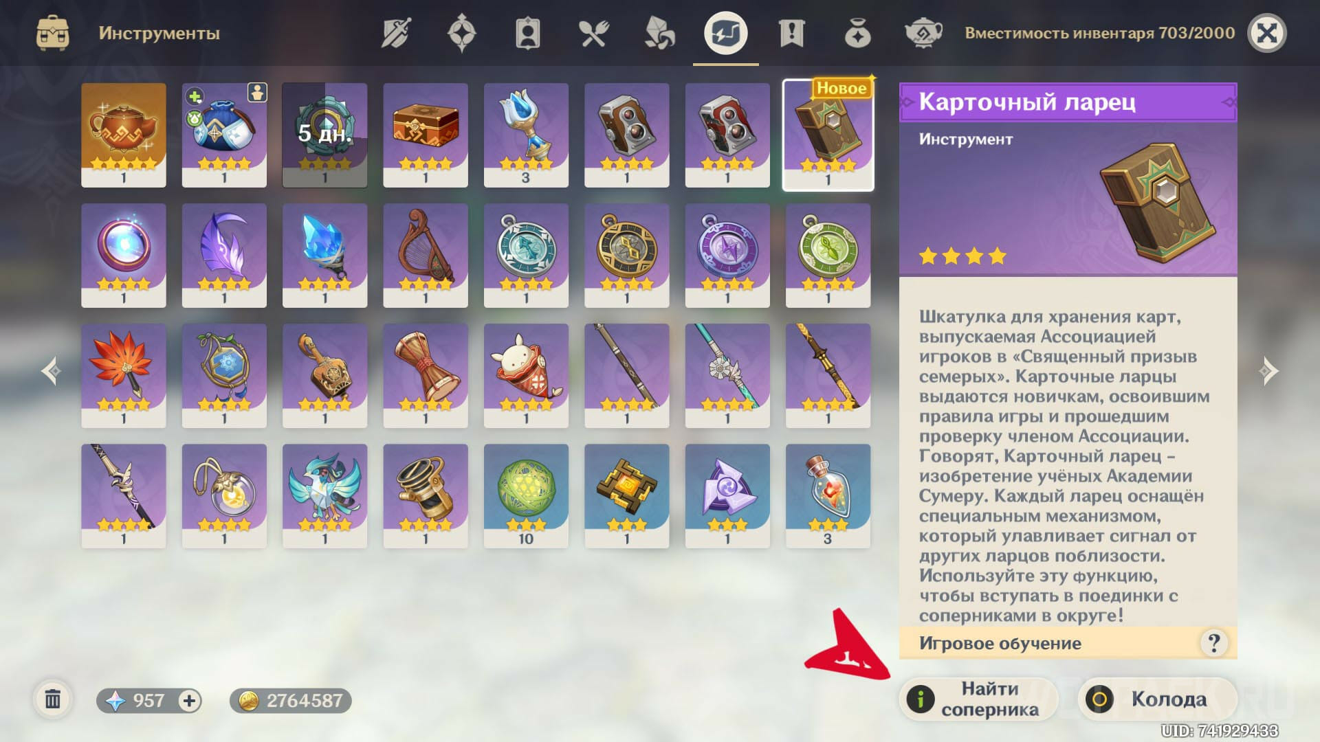 Для дальнейших сражений Путешественнику потребуется особое изобретение из Сумеру — Карточный ларец, способный находить доступных для игры игроков поблизости.