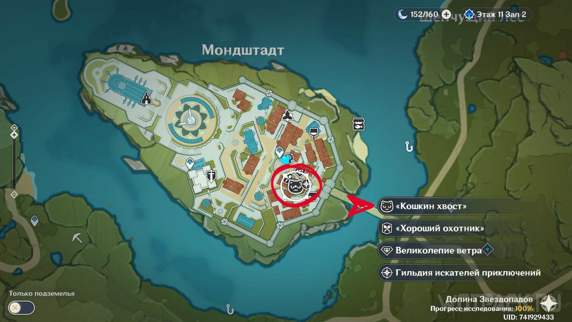 Зайдите в лавку алхимика в Мондштадте, чтобы приступить к выполнению задания. Выслушайте разговор между Сахарозой и Тимеем, так Путешественник окажется в курсе событий и узнает о существовании карточной игры. За подробностями отправляйтесь вместе с помощницей алхимика в новую локацию Мондштадта — таверну «Кошкин хвост«.