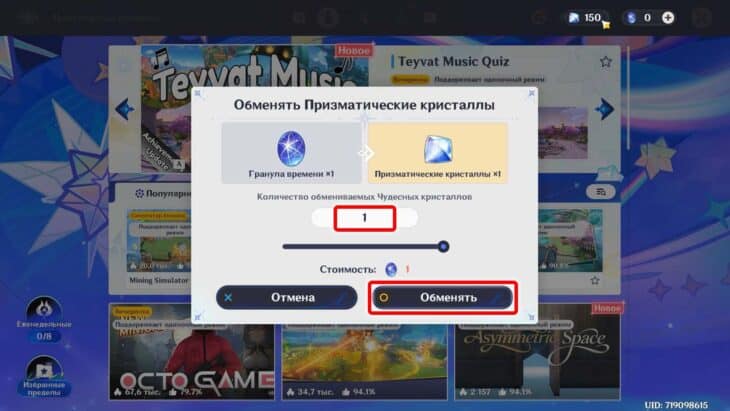 Для преобразования гранул времени кликните на плюс рядом со значком сияющих камней и выберите желаемое количество. Они переведутся в соотношении 1×1 и будут храниться на счете бессрочно.