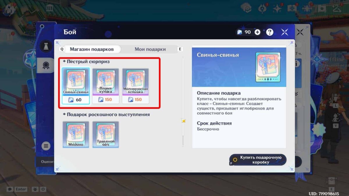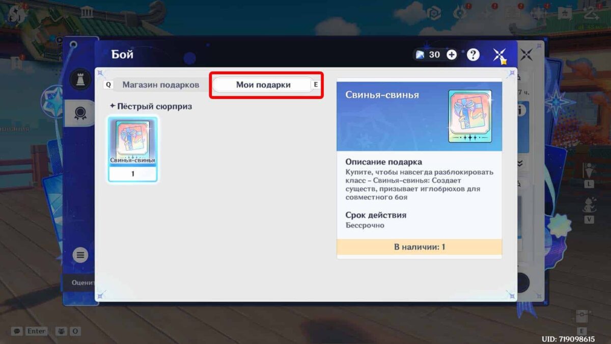 - Приобретенные дополнения отображаются во вкладке «Мои подарки». Она находится правее магазина с поощрениями.