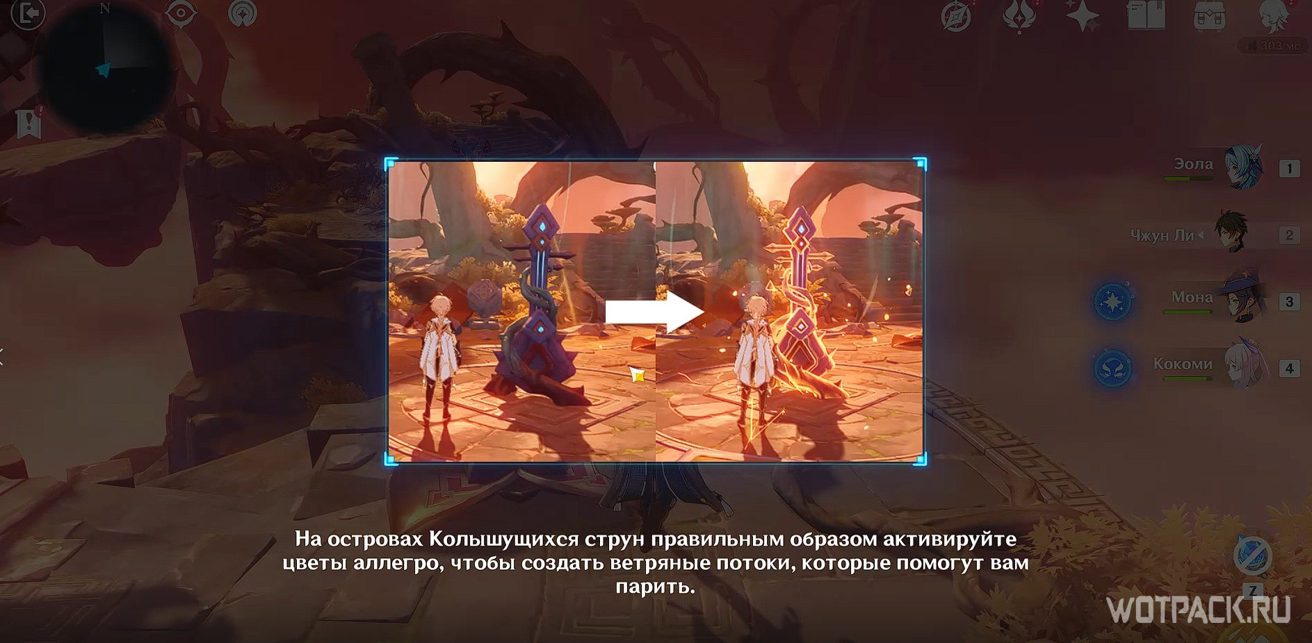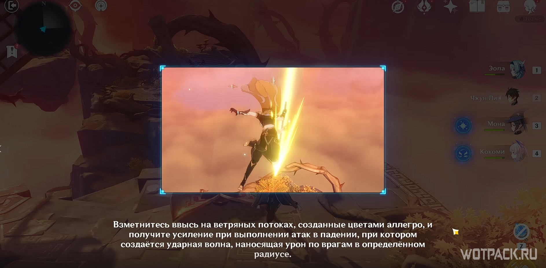 Активируйте цветы аллегро по откату. Эти цветы создают ветряные потоки, благодаря которым можно наносить усиленные АоЕ удары по врагам в падении. Стоит отметить, что заряд держится не всю битву, поэтому не забывайте обновлять его эффект.