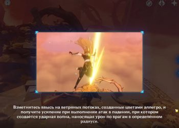 Например, гитара Синь Янь в ее данже позволяет активировать ветряные потоки для совершения мощных ударов в падении.