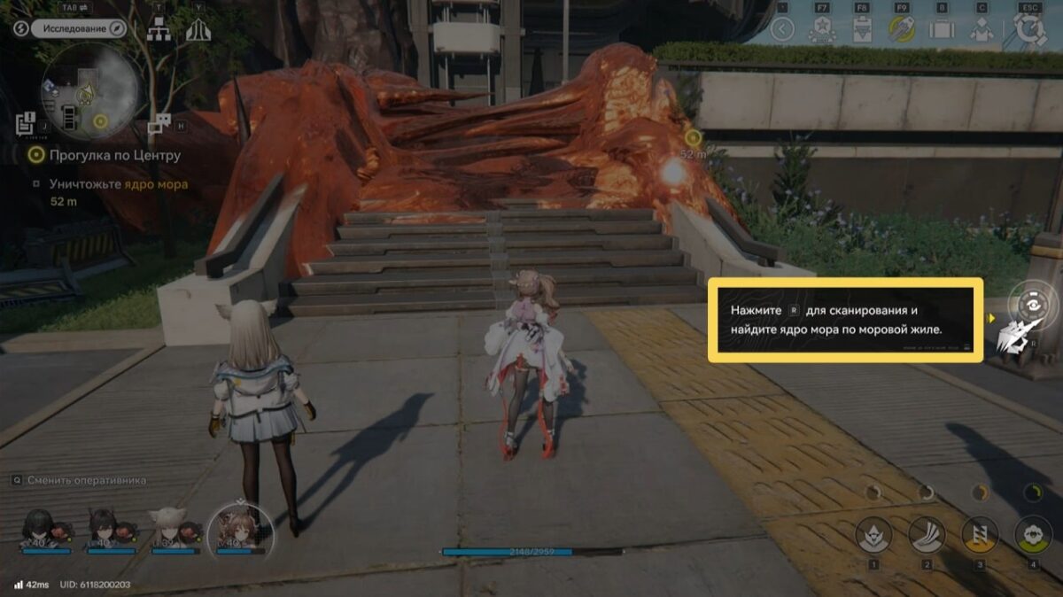- Расшифруйте скопления скверны, использовав «Сканер» (по умолчанию «R»). Это действие позволит обнаружить уязвимость моровой жилы.