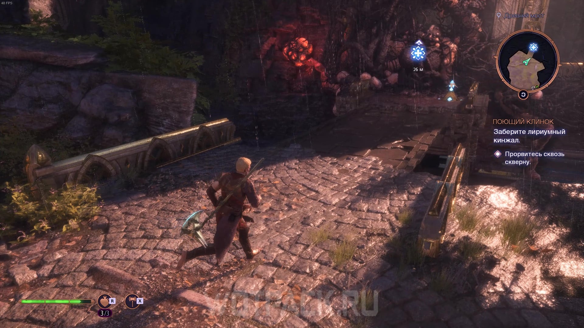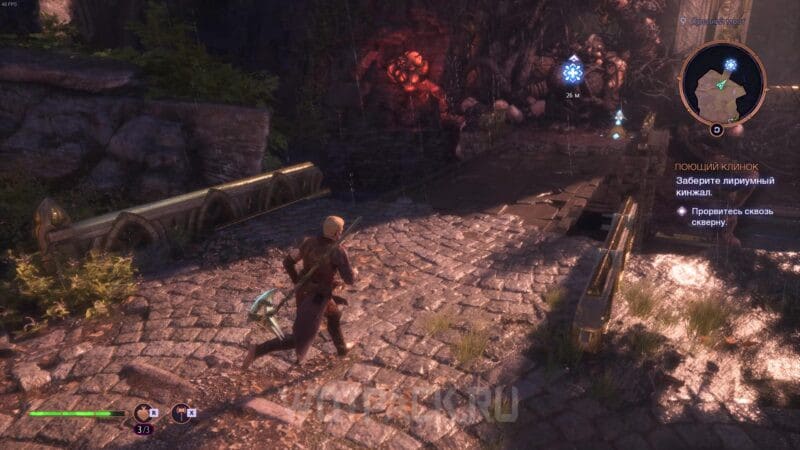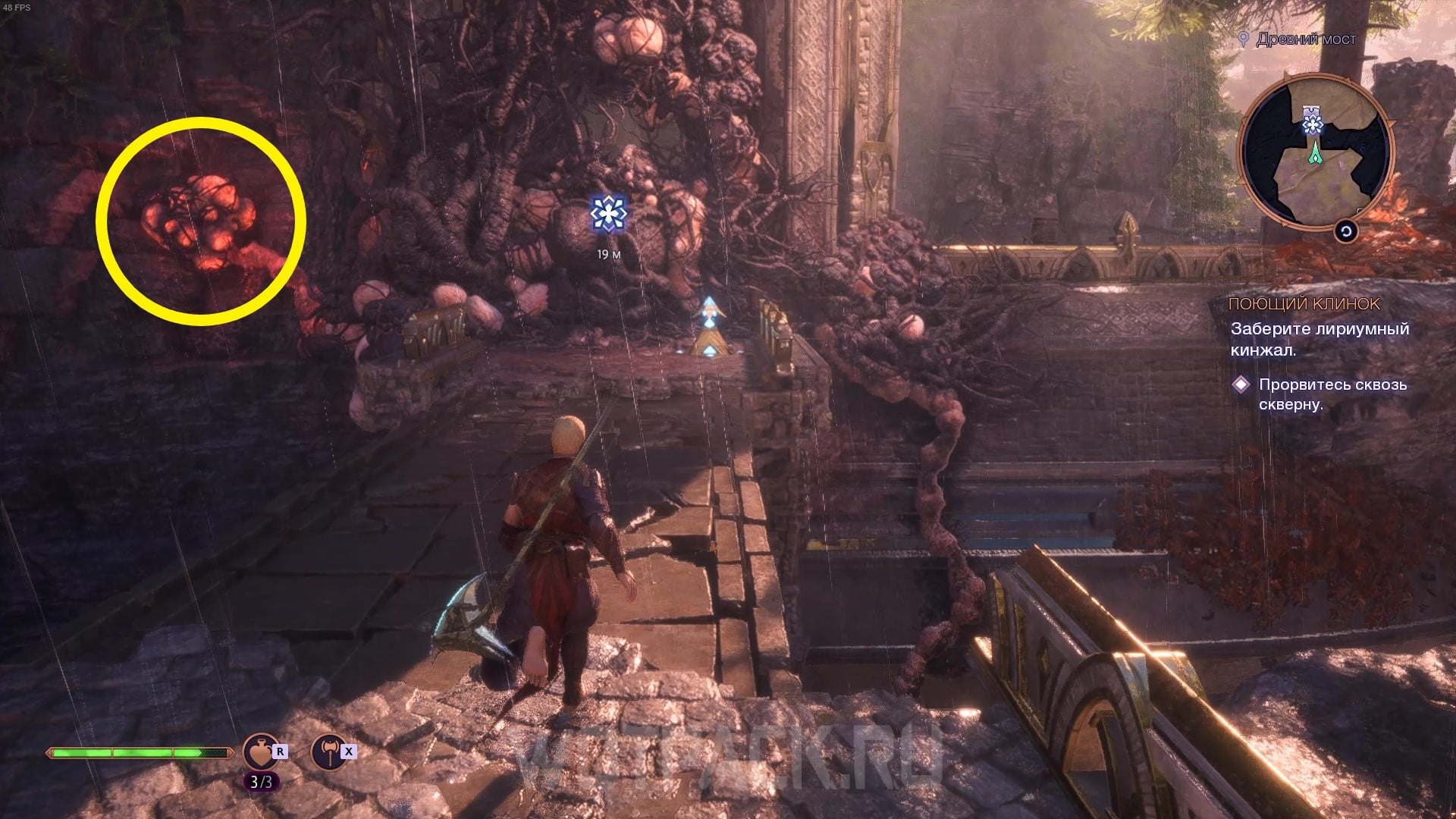 - Найти и уничтожить второе ярко-красное образование скверны. Для этого понадобится убрать мост.