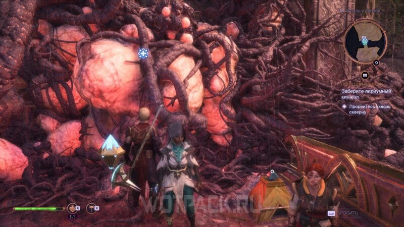 - Уничтожив два малых сгустка, получите возможность прорубить путь через стену скверны, преграждающую путь.