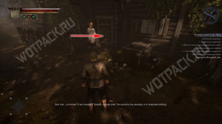 Отправляйтесь вместе с торговцем к заброшенному зданию. Подождите, когда он вскроет дверь, и войдите внутрь. Это окажется засадой, сам Лис сбежит в неизвестном направлении.