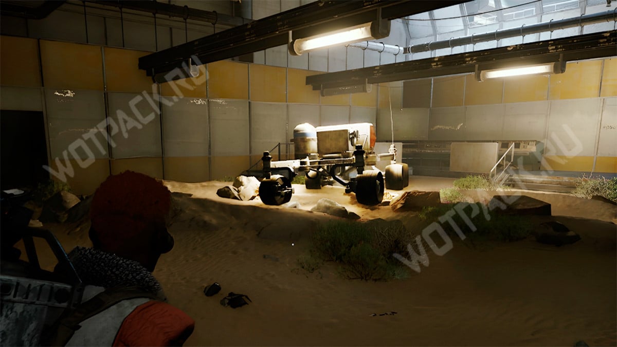 Точка находится на нижнем уровне, в Песочнице для роботов 2. Её охраняют взрывботы, турель и один измельчитель. Обойдите их по-тихому или отвлеките гранатами-приманками и быстро приблизьтесь к объекту. Взаимодействуйте с багги с любой стороны — выполнение цели займет всего пару секунд.