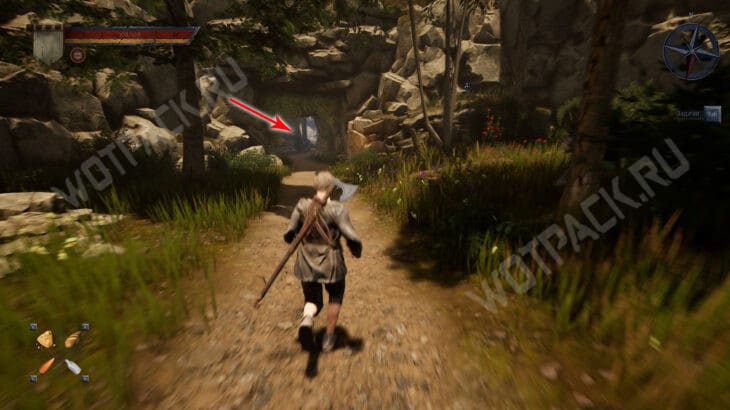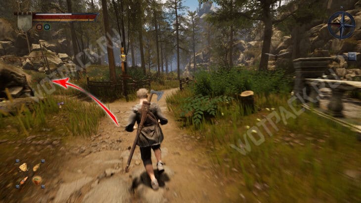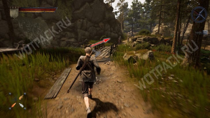 Покиньте таверну и следуйте по правой тропе от нее. На развилке с указателем сверните в сторону Темнолесья, не поднимаясь на возвышенность с Фортом.