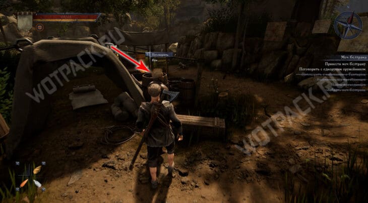 Поговорив с Сирилом, осмотрите лагерь и принесите ремесленнику его инструменты: