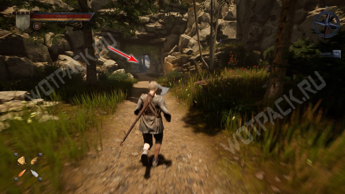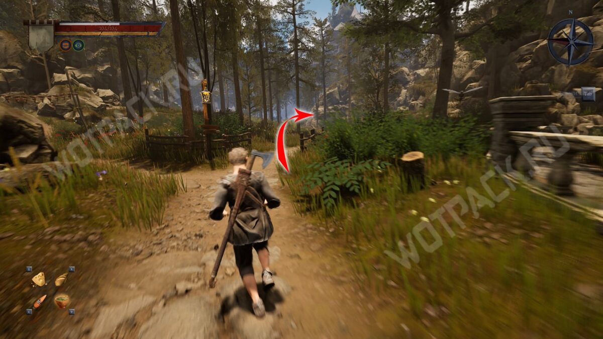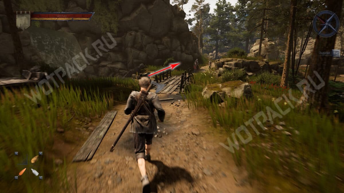 Покиньте таверну и следуйте по правой тропе от нее. На развилке с указателем сверните в сторону Темнолесья, не поднимаясь на возвышенность с Фортом.