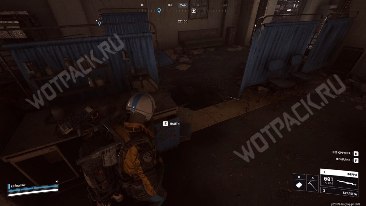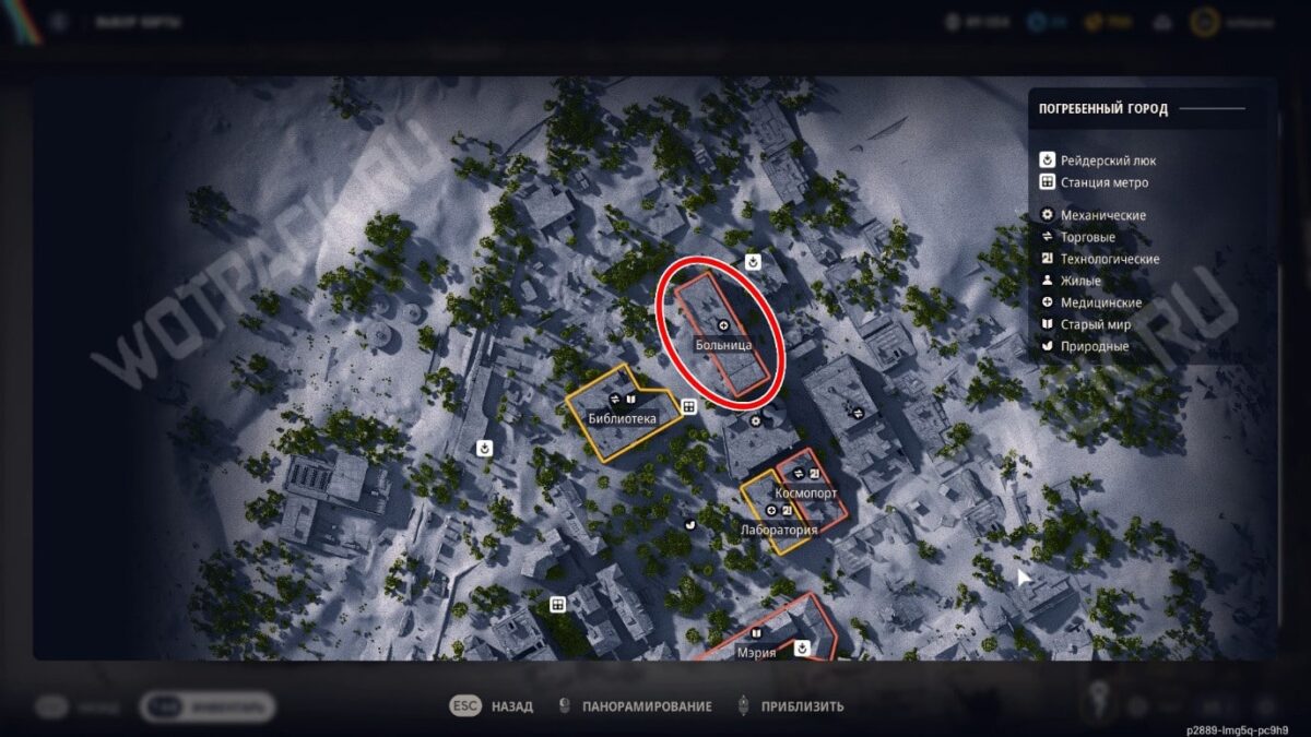 Больница Погребенного города — ещё одна зона с высоким риском и наградой. К счастью, здесь не понадобится искать конкретную комнату. Достаточно забежать в любое из помещений и обыскать три точки сбора лута.