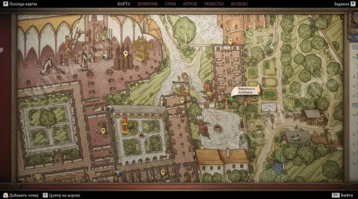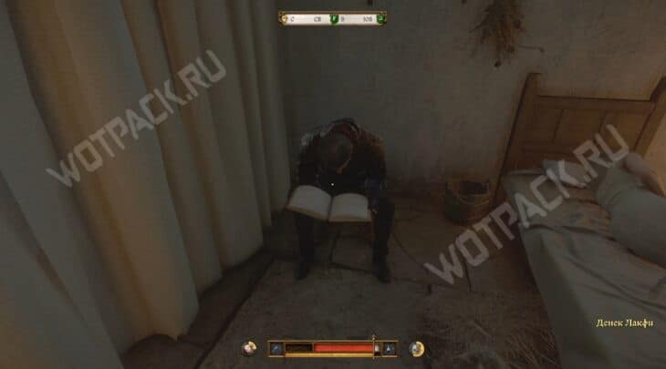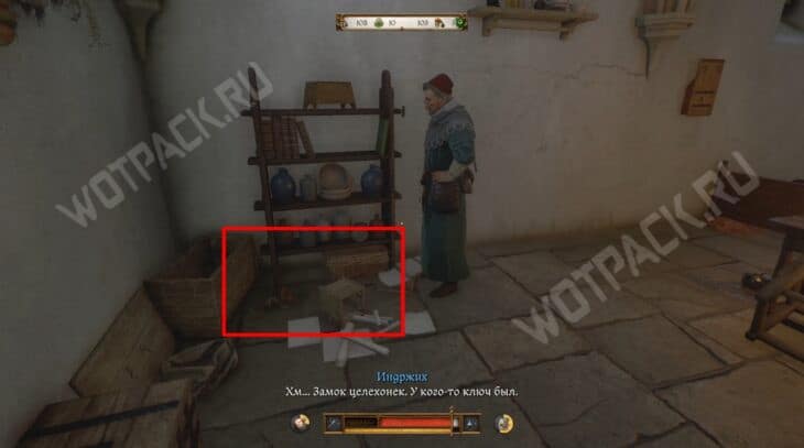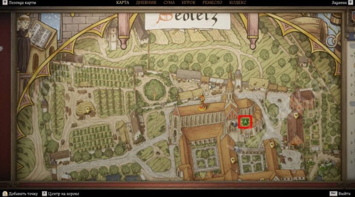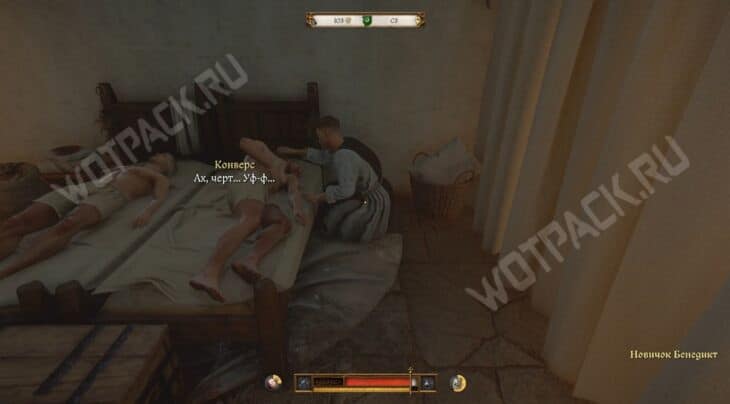 Сперва необходимо осмотреть разграбленную комнату: изучите дверной замок и разбросанные в углу вещи. Если не сделали капюшон перед походом в склеп, поговорите с лекарем и попросите снадобье от чумы.