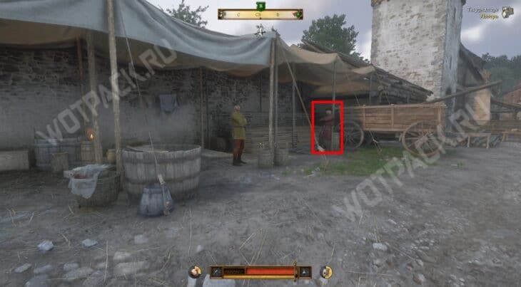 Сперва стоит расспросить ремесленников на севере от храма. Заведите беседу с работником Лойзой, мужчиной в красном, стоящим у телеги. Он не захочет отвечать на вопросы, поэтому придется на него, пройдя одну из проверок: