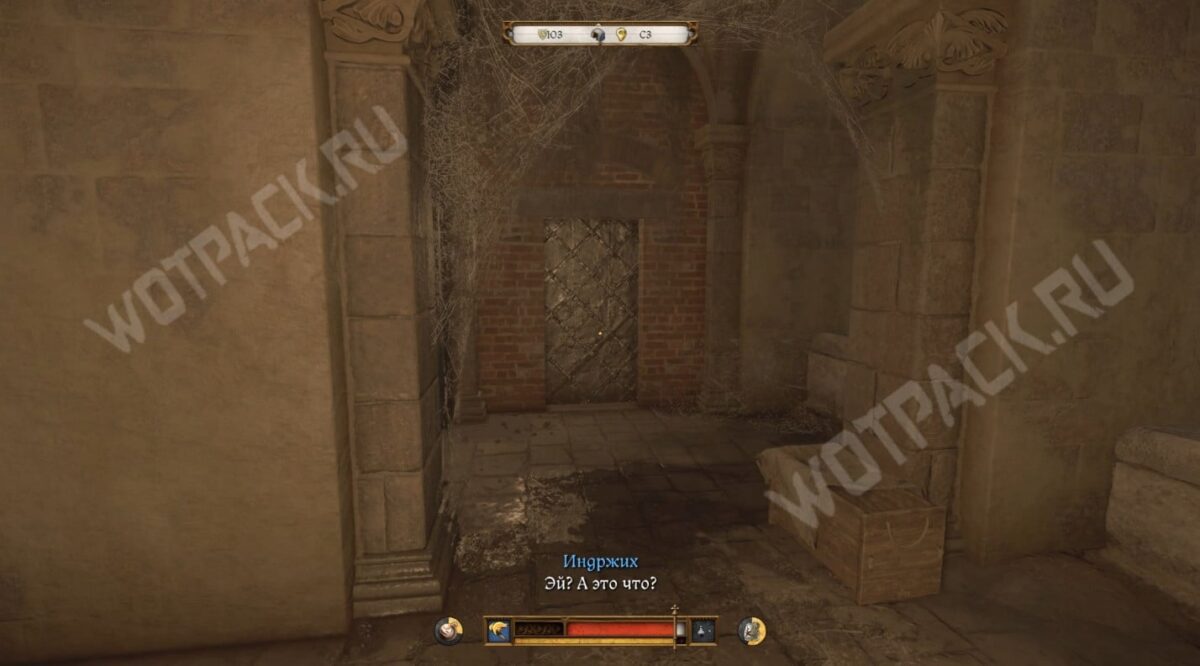 Пока Индро изучал содержимое крипты, кто-то запер за ним дверь. Выбраться из ловушки можно двумя способами: