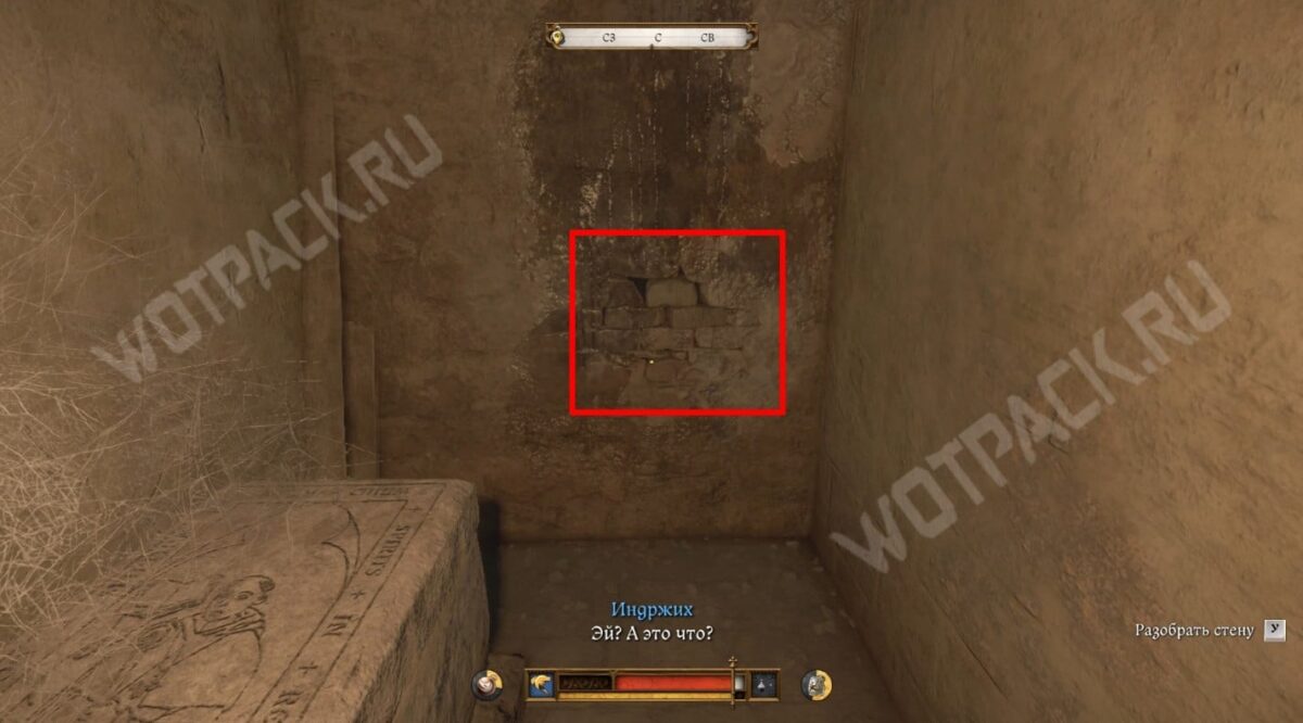 - Разобрать стену — стоя лицом к двери, сверните направо и проделайте в стенке отверстие.