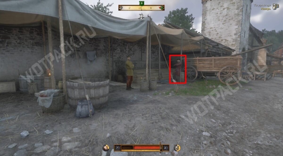 Сперва стоит расспросить ремесленников на севере от храма. Заведите беседу с работником Лойзой, мужчиной в красном, стоящим у телеги. Он не захочет отвечать на вопросы, поэтому придется на него, пройдя одну из проверок: