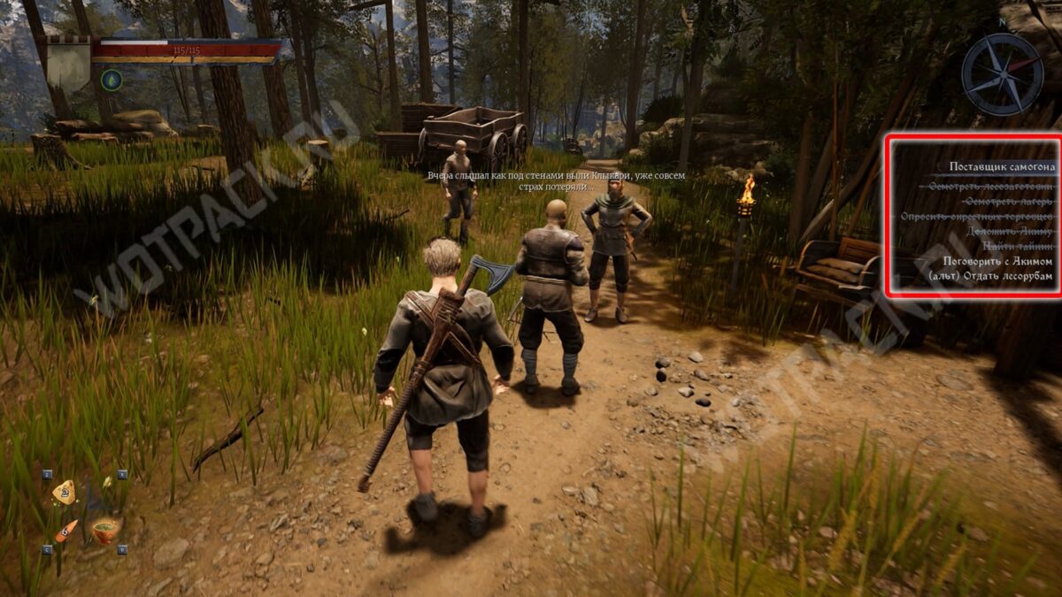 Альтернативный вариант открывается в квестлоге после разговора с одним из дровосеков до сдачи поручения Акиму. Советуем не пропускать скрытые задания, чтобы заработать больше золота и опыта.